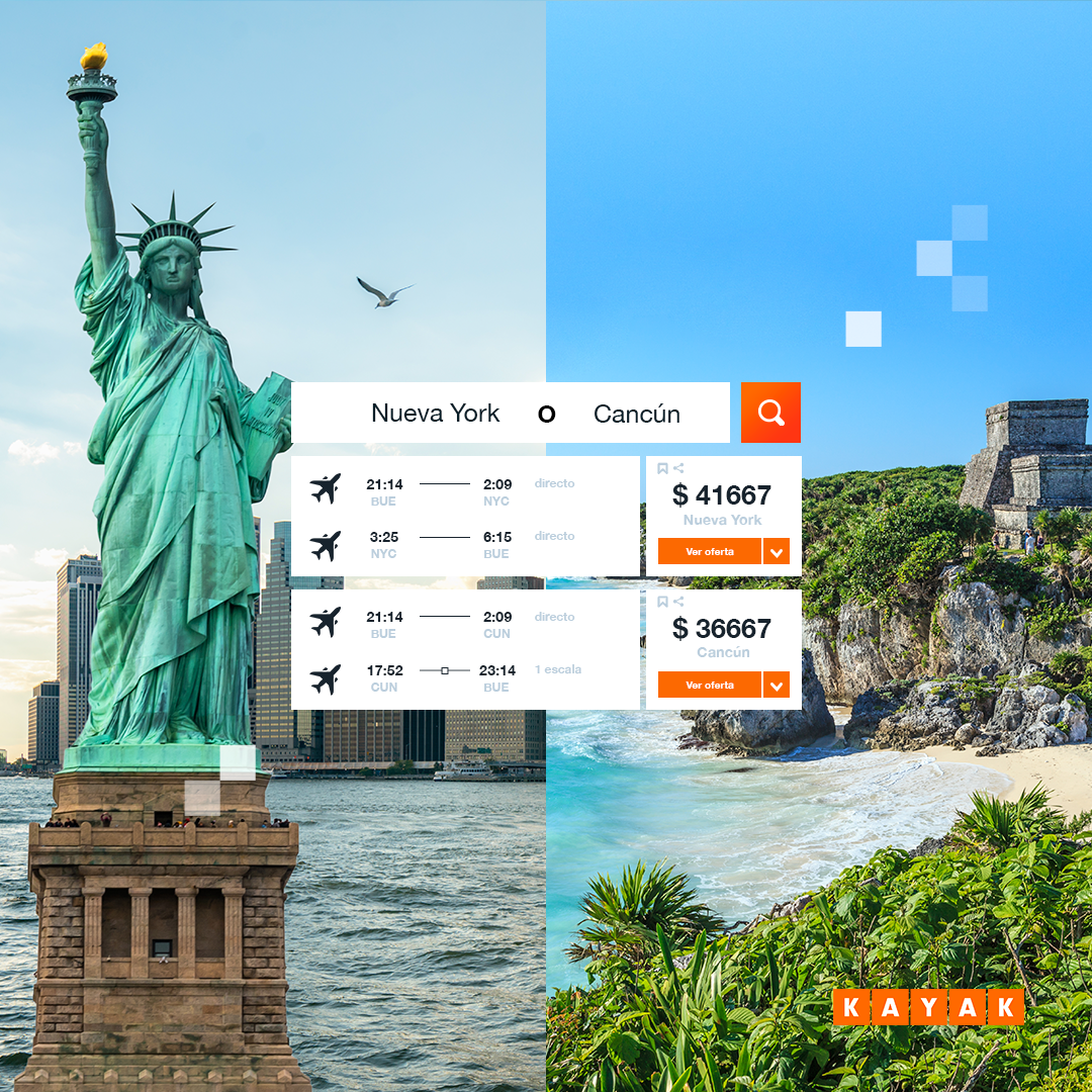 Monthly branded social ads for KAYAK Latin America’s channels to showcase search filters, pricing, and seasonal activities.